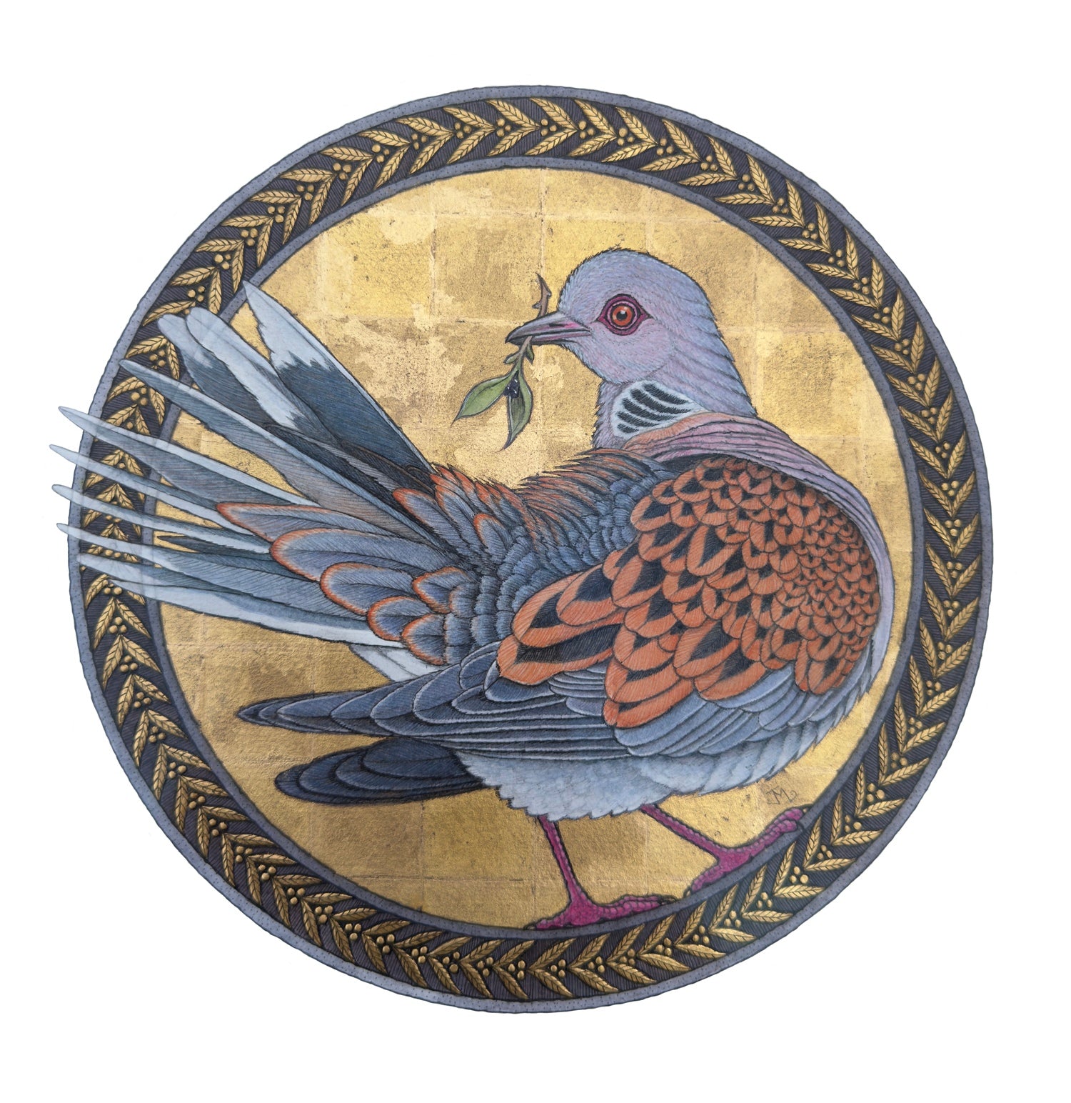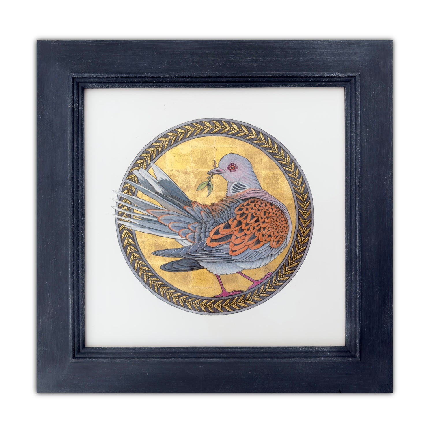 Framed Acrylic, Pen, 24 carat gold leaf